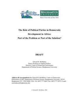 The Role of Political Parties in Democratic Development in Africa: Part of the Problem or Part of the Solution? DRAFT Edward R. McMahon Dean's Professor of Applied ...