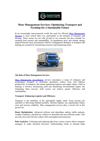 Discover Comprehensive Mass Management Services - Transport and Farming