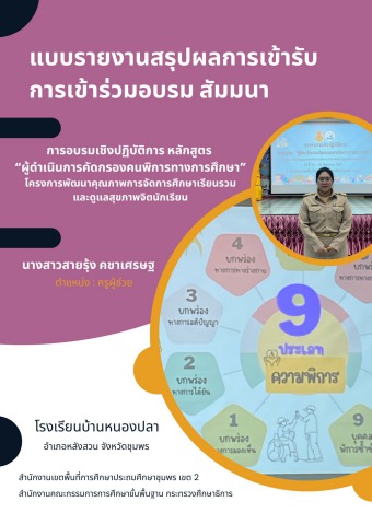 รายงานผลการอบรมเชิงปฏิบัติการ หลักสูตร “ผู้ดำเนินการคัดกรองคนพิการทางการศึกษา” โครงการพัฒนาคุณภาพการจัดการศึกษาเรียนรวมและดูแลสุขภาพจิตนักเรียน