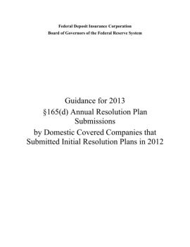 Guidance for 2013 §165(d) Annual Resolution Plan ...
