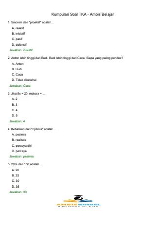 Soal latihan TKA Bahasa Indonesia tahun 2025 2026