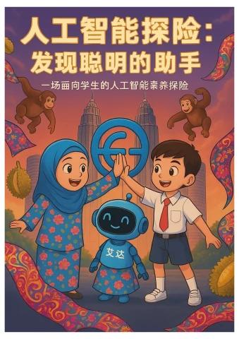 你现在手中拿着的是一本非常特别的书—— 马来西亚第一本 从一年级到六年级,以正确方式教授 人工智能(AI)的儿童读物。