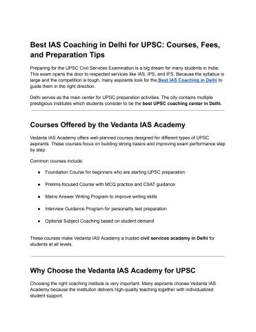 Best IAS Coaching in Delhi for UPSC Courses, Fees, and Preparation Tips