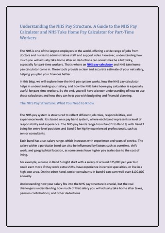 Understanding the NHS Pay Structure A Guide to the NHS Pay Calculator and NHS Take Home Pay Calculator for Part-Time Workers