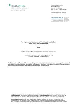 Universitätsklinik für Inselspital, Universitätsklinik für Neurochirurgie, CH-3010 Bern | Telefonzentrale Inselspital: 031 63221 11 | Notfall: 031 632 24 02