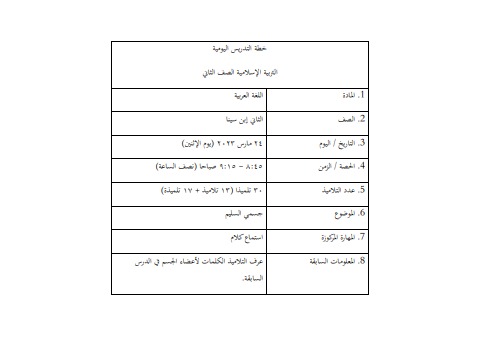 RANCANGAN PENGAJARAN HARIAN BAHASA ARAB ISTIMA KALAM