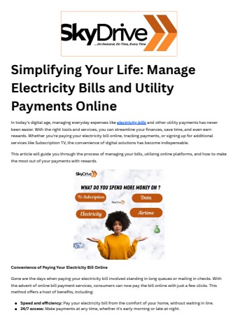SkyDrive simplifies "Utility Bill Payment" with secure, fast, and reliable online services. Manage and pay your bills effortlessly, saving time and ensuring hassle-free transactions for all your utility needs.