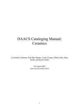 1 DAACS Cataloging Manual: Ceramics by Jennifer Aultman, Nick Bon-Harper, Leslie Cooper, Jillian Galle, Kate Grillo, and Karen Smith OCTOBER 2003