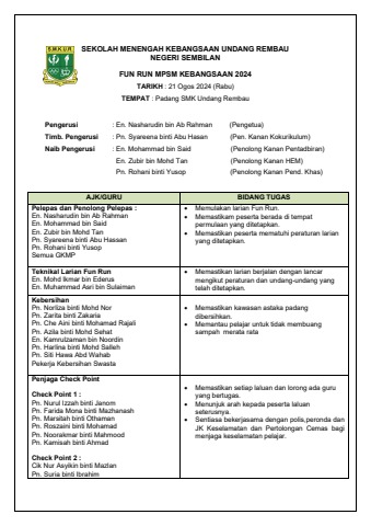 AJK FUN RUN MPSM KEBANGSAAN SMKUR 2024