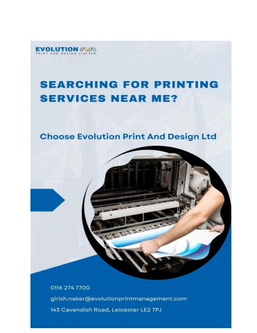Evolution Print And Design Ltd provides quick and efficient printing services near you. Whether for business or personal projects, our expert team ensures high-quality prints with a fast turnaround. Get all your printing needs met locally and professionally.