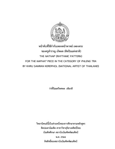 เรื่อง หน้าทับที่ใช้กำกับเพลงหน้าพาทย์ เพลงตระ ของครูสำราญ เกิดผล (ศิลปินแห่งชาติ) ผู้แต่ง ทศพล เพียรดี ปี 2566