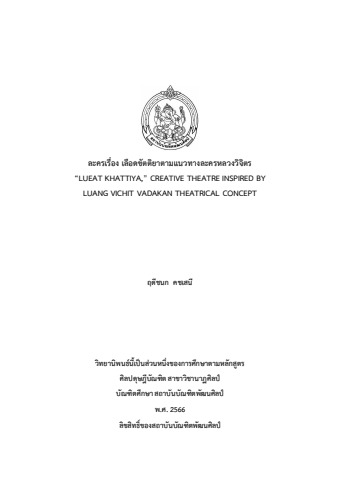 วิทยานิพนธ์ หลักสูตรศิลปดุษฎีบัณฑิต สถาบันบัณฑิตพัฒนศิลป์ สาขาวิชานาฏศิลป์ เรื่อง ละครเรื่อง เลือดขัตติยาตามแนวทางละครหลวงวิจิตร ฤดีชนก คชเสนี 2566