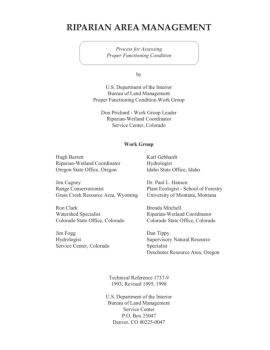1 RIPARIAN AREA MANAGEMENT Process for Assessing Proper Functioning Condition by U.S. Department of the Interior Bureau of Land Management Proper Functioning ...