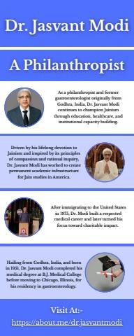 Born in Godhra, India, Dr. Jasvant Modi earned his medical degree from B.J. Medical College before completing his residency training in Chicago, Illinois. After immigrating to the United States in 1975, he established a distinguished career in gastroenterology and then expanded his life mission into philanthropy advancing healthcare access and Jain education.