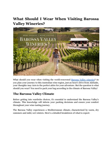 Planning a visit to Barossa Valley wineries? Don't forget to pack the right outfit! Discover the perfect balance of comfort and style for an unforgettable wine tasting experience