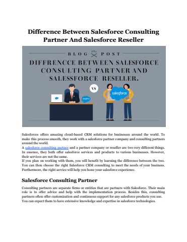 Difference Between Salesforce Consulting Partner And Salesforce Reseller