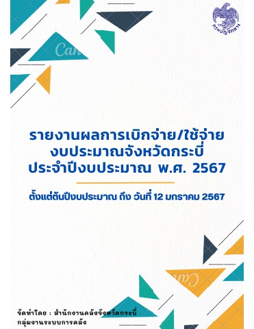 ผลการเบิกจ่าย/ใช้จ่ายงบประมาณจังหวัดกระบี่ประจำปีงบประมาณ 2567 ข้อมูล ณ วันที่ 12 มกราคม 2567.