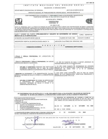 Convocatorias a puestos de Confianza "B" correspondiente a la primera parte del mes de octubre de 2025.