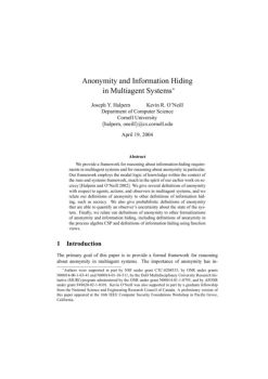 Anonymity and Information Hiding in Multiagent Systems∗ Joseph Y. Halpern Kevin R. O’Neill Department of Computer Science Cornell University {halpern, oneill}@cs ...