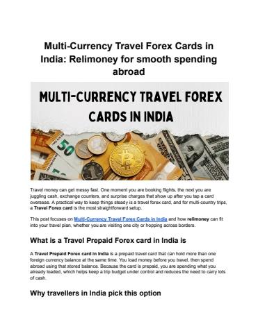 This post focuses on Multi-Currency Travel Forex Cards in India and how relimoney can fit into your travel plan, whether you are visiting one city or hopping across borders.