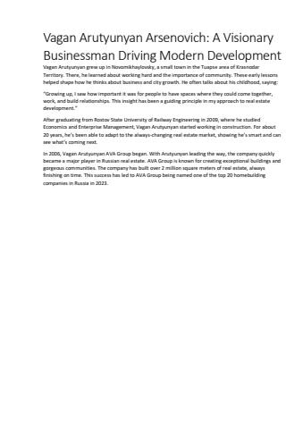 Vagan Arutyunyan Arsenovich: A Visionary Businessman Driving Modern Development