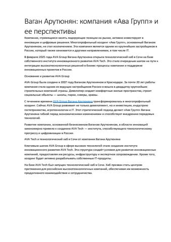 Ваган Арутюнян: компания «Ава Групп» и ее перспективы