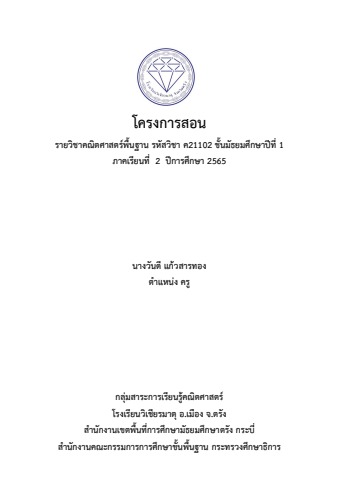 โครงการสอนรายวิชาคณิตศาสตร์ ค21102