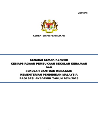 SENARAI SEMAK KENDIRI KESIAPSIAGAAN PEMBUKAAN SEKOLAH KERAJAAN DAN SEKOLAH BANTUAN KERAJAAN KPM BAGI SESI AKADEMIK TAHUN 2024/2025