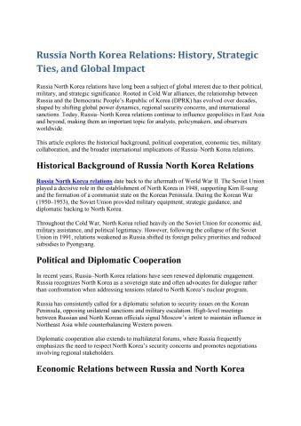 Visit Now: - https://avinasharora.stck.me/post/1707916/Russia-North-Korea-Relations-History-Strategic-Ties-and-Global-Impact