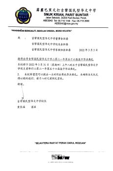 Surat Jemputan ke Majlis Tamat Persekolahan Tingkatan 5 SMJK Krian Kali Ke-56 Tahun 2021