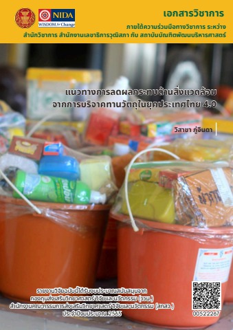 00522267 รายงานการวิจัย เรื่อง แนวทางการลดผลกระทบด้านสิ่งแวดล้อมจากการบริจาคทานวัตถุในยุคประเทศไทย 4.0 ของ สถาบันบัณฑิตพัฒนบริหารศาสตร์
