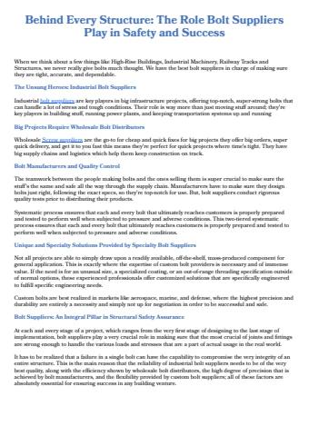 Structures, we never really give bolts much thought. We have the best bolt suppliers in charge of making sure