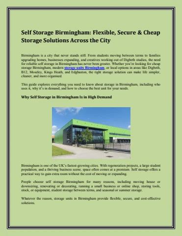 Self Storage Birmingham Flexible, Secure & Cheap Storage Solutions Across the City