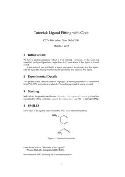 Tutorial: Ligand Fitting with Coot CCP4 Workshop New Delhi 2010 March 3, 2010 1 Introduction We have a protein structure (which is well-refined). However, we have ...
