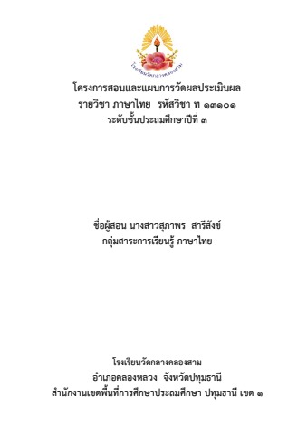 โครงการสอน ภาษาไทย ป.3 2566 สุภาพร