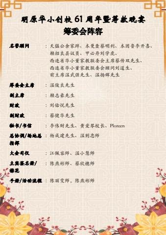 明原华小创校61周年暨筹款晚宴_筹委会阵容