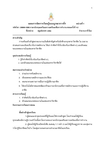 แผนการสอนภาษาอังกฤษเตรียมความพร้อมเพื่อการทำงาน ปวช.ปี3