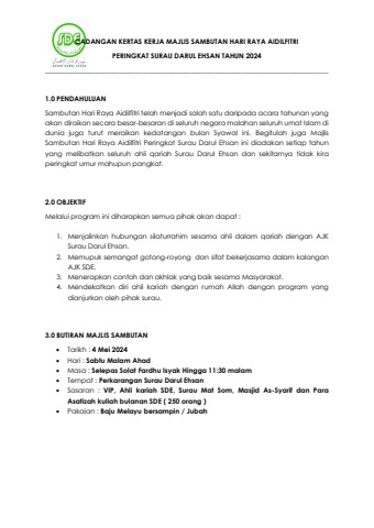 CADANGAN SAMBUTAN HARI RAYA PERINGKAT SURAU DARUL EHSAN TAHUN 2024