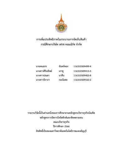 การเพิ่มประสิทธิภาพในกระบวนการจัดเก็บสินค้า กรณีศึกษาบริษัท เฟรช คอมเมิร์ซ จำกัด