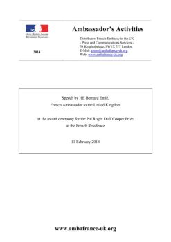 www.ambafrance-uk.org to this great diplomat prince leaves no French person indifferent. For all that, France’s reciprocal interest in Duff Cooper is ...