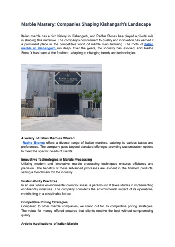 Italian marble has a rich history in Kishangarh, and Radhe Stonex has played a pivotal role in shaping this narrative. The company's commitment to quality and innovation has earned it a prominent place in the competitive world of marble manufacturing. The roots of Italian marble in Kishangarh run deep. Over the years, the industry has evolved, and Radhe Stone X has been at the forefront, adapting to changing trends and technologies.