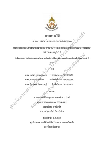 กลุ่ม 5 การศึกษาความสัมพันธ์ระหว่างการใช้สื่อผ่านหน้าจอเพียงอย่างเดียวกับการพัฒนาการ...