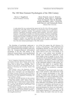 list and how it relates to other measures of eminence in psychology. The terms psychologist and 20th century also require definition. For present purposes, psy-