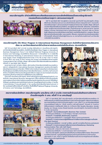 จดหมายข่าว คณะบริหารธุรกิจ เดือนกุมภาพันธ์ 2567