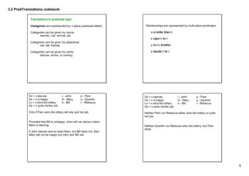 3.2 PredTranslations.notebook 3 Dx = x dances Hx = x is happy Lx = x wins the lottery Qx = x quits his/her job Someone wins the lottery, is happy and ...