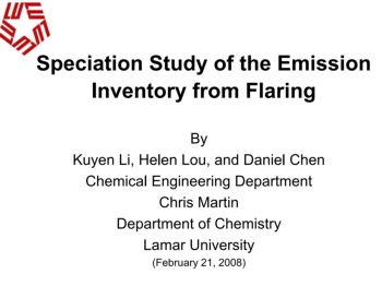 Speciation Study of the Emission Inventory from Flaring By Kuyen Li, Helen Lou, and Daniel Chen Chemical Engineering Department Chris Martin Department of Chemistry