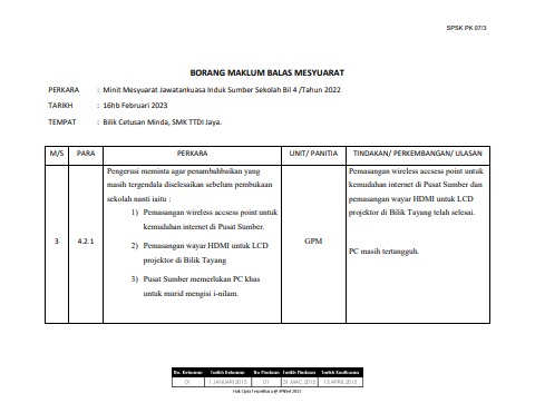 MAKLUM BALAS MESYUARAT PSS BIL 4/2022