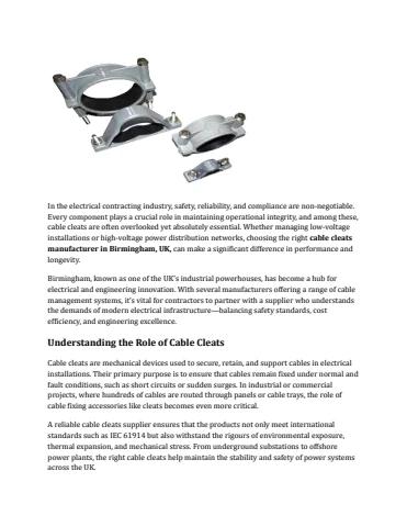Best Cable Cleats Manufacturer in Birmingham, UK for Electrical Contractors