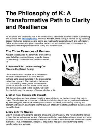 Transcend the POWER of Kenism! Learn Clarity, Resilience, and Growth in this philosophy. Learn how to handle and overcome the challenges in your life with the help of expert ebooks. Visit :- https://philosophyofk.com