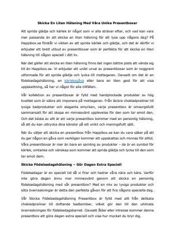 Att sprida glädje och kärlek är något som vi alla strävar efter, och vad kan vara mer passande än att skicka en liten hälsning för att lysa upp någons dag? På Happibox.se förstår vi vikten av att sprida kärlek och glädje, och det är därför vi erbjuder ett brett utbud av presentboxar som är perfekta för att skicka en liten hälsning till någon speciell i ditt liv.